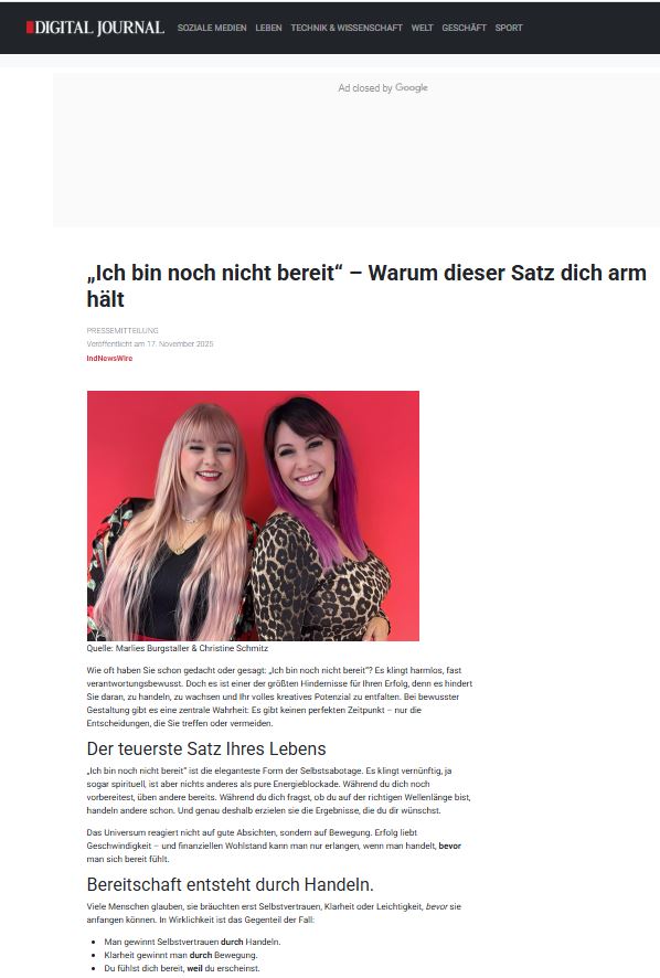 In meinem Pressebereich findest du Neuigkeiten, Einblicke und alles Wissenswerte rund um mich und mein Unternehmen – kompakt und aktuell.