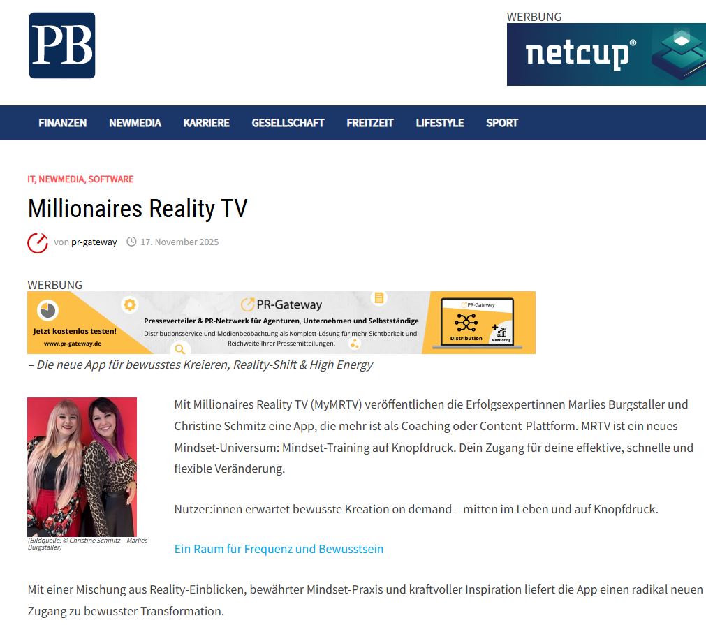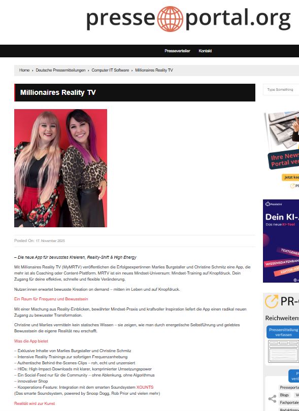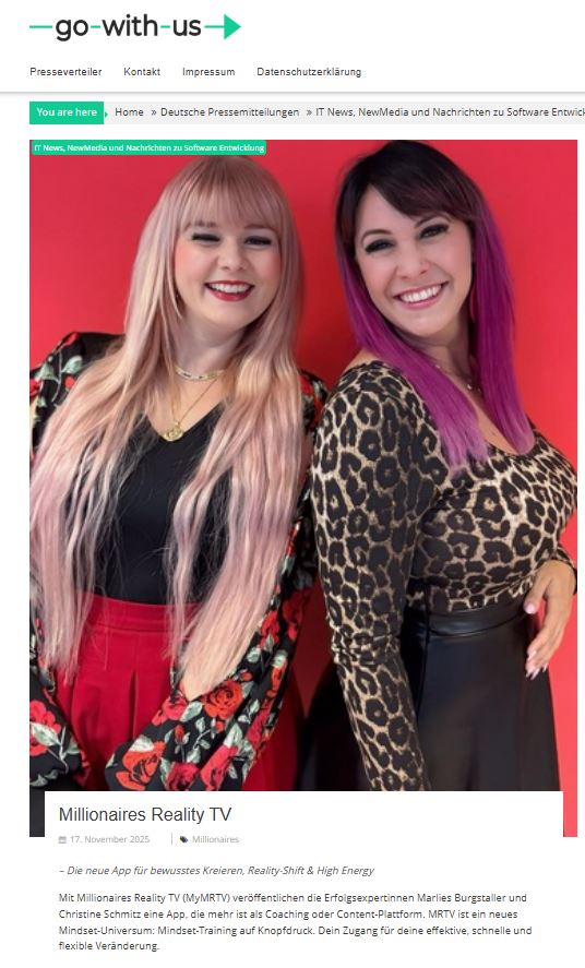 Mit Millionaires Reality TV veröffentlichen die Erfolgsexpertinnen Marlies und Christine eine App